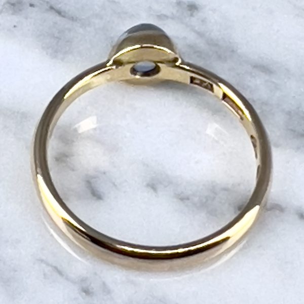 RING, 18k guld med blå sten, vikt 2,9g, stl 18, tillverkad i Sverige 1927.