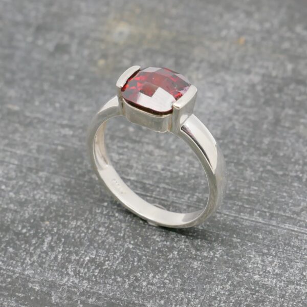 Vintage, ring, silver med röd sten.
