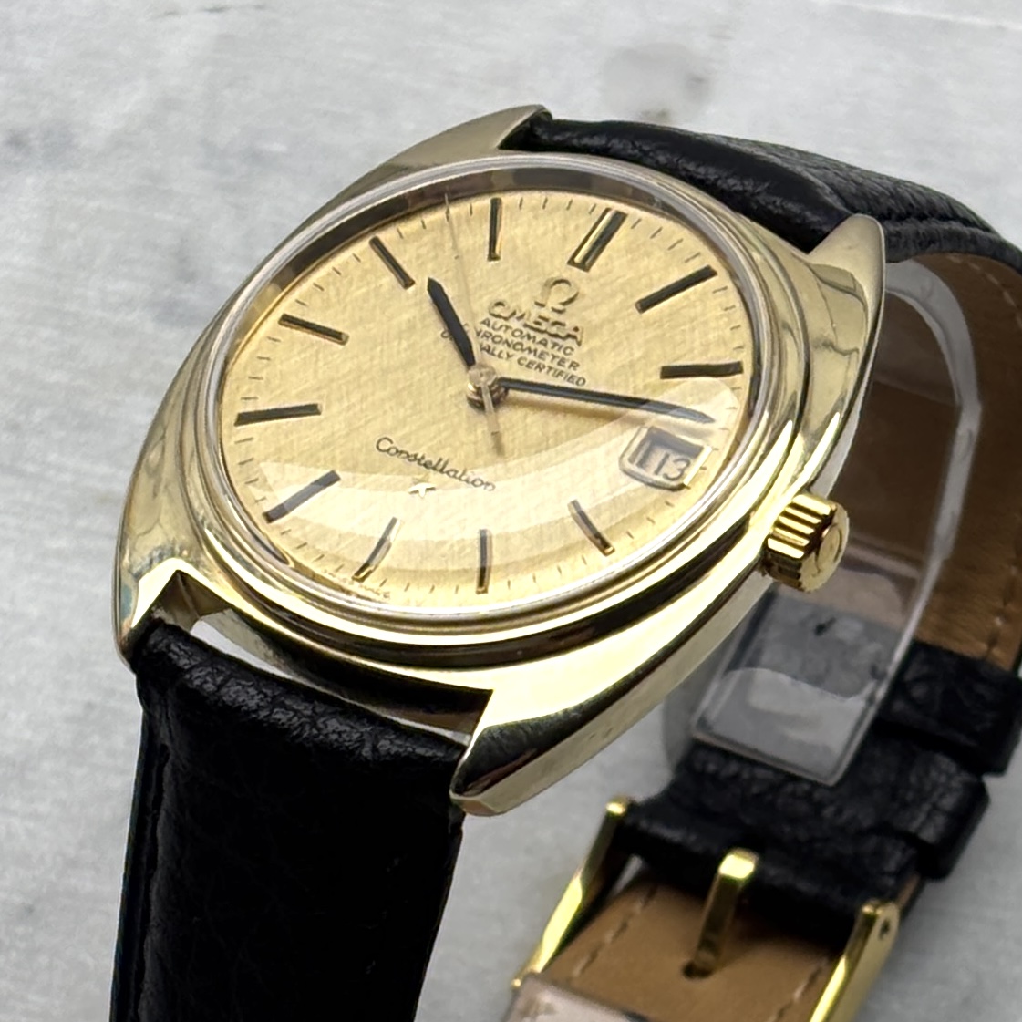 OMEGA, Constellation, ref CD 168.017 SP, boett i guld på stål 35mm, automatisk, cal 564, sn:26005706, plexiglas, datum, läderband, ca 1968.