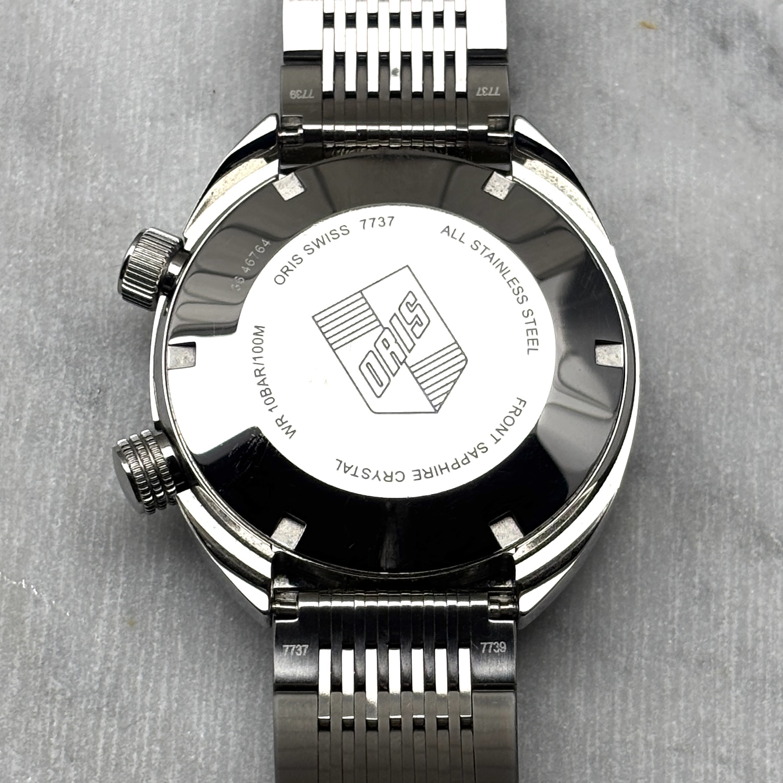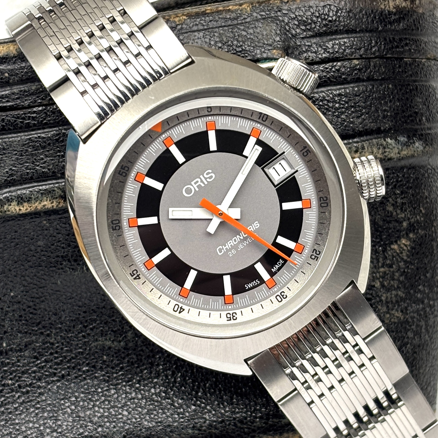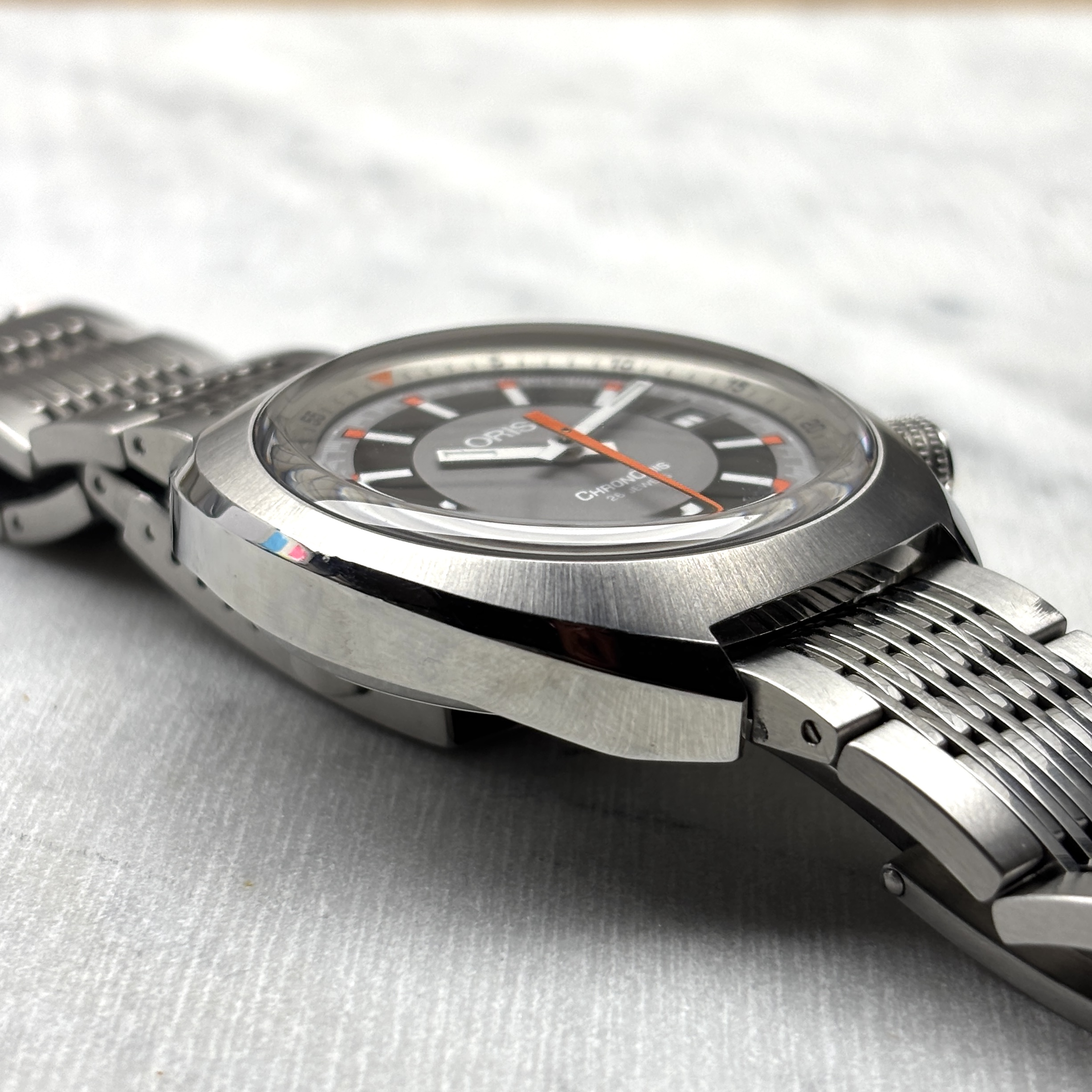 ORIS, ChronOris, Ref 7737, herrur, boett i stål 39mm, automatisk, cal 733, boettnummer 3646764, safirglas, datum, originallänk.
