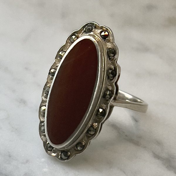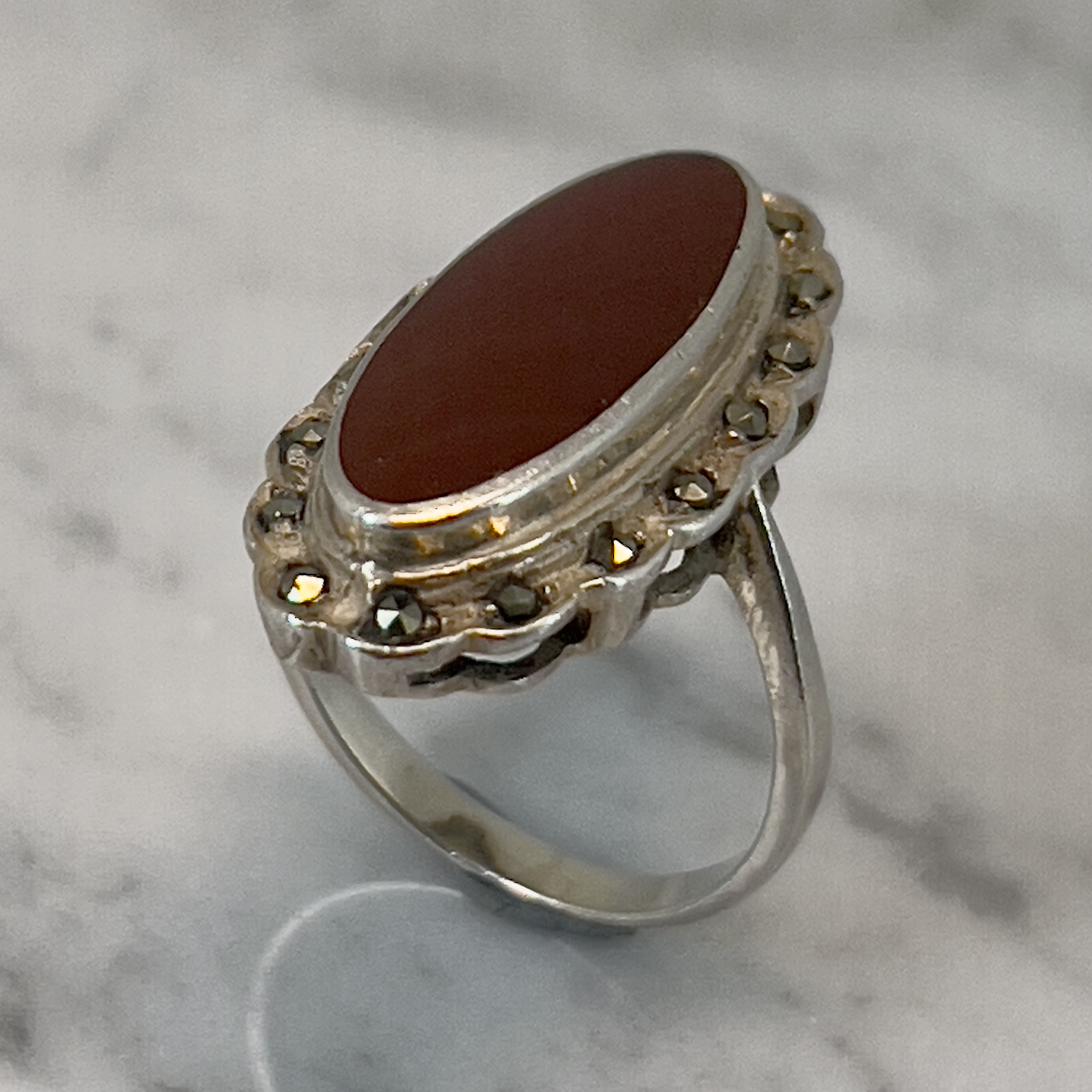 RING, silver med brun sten, vikt 6,4g, stl 19