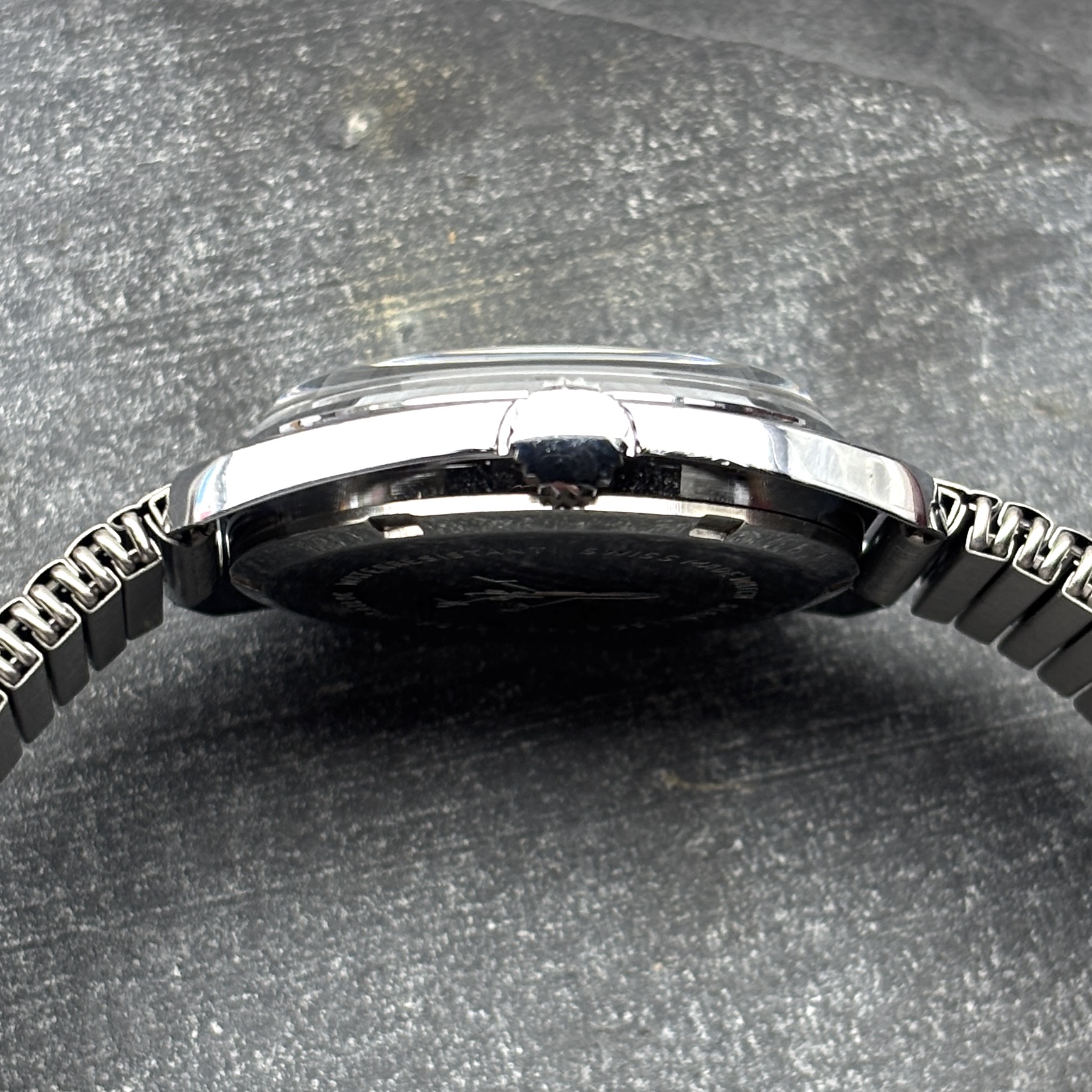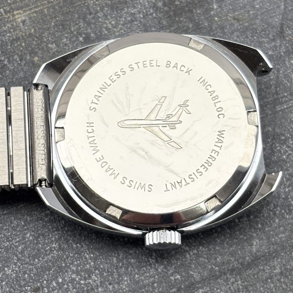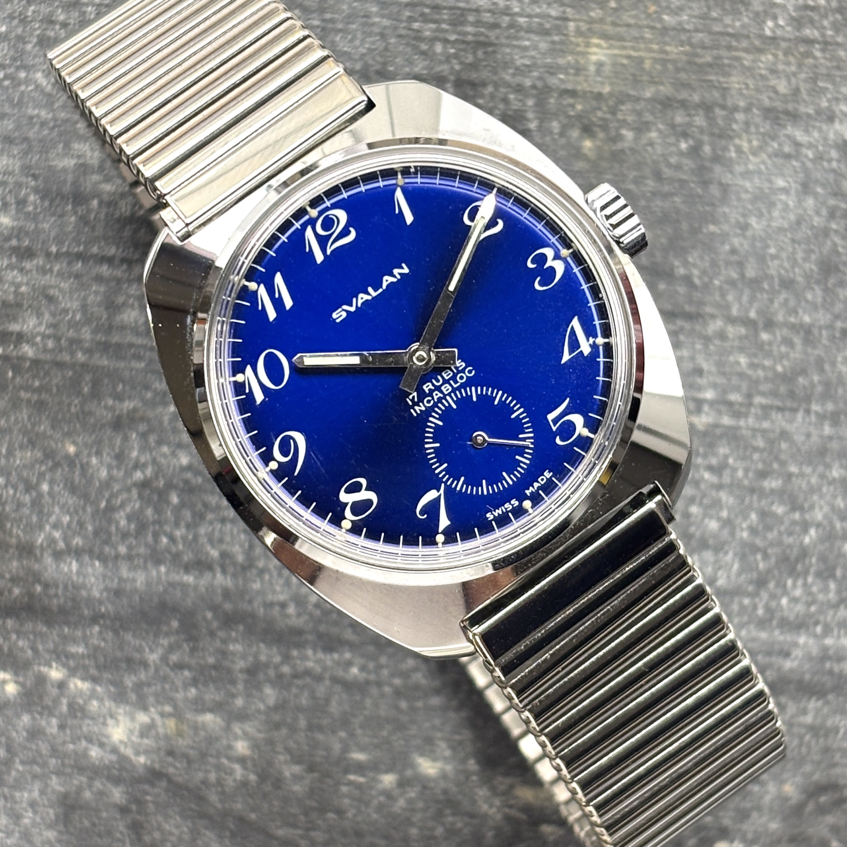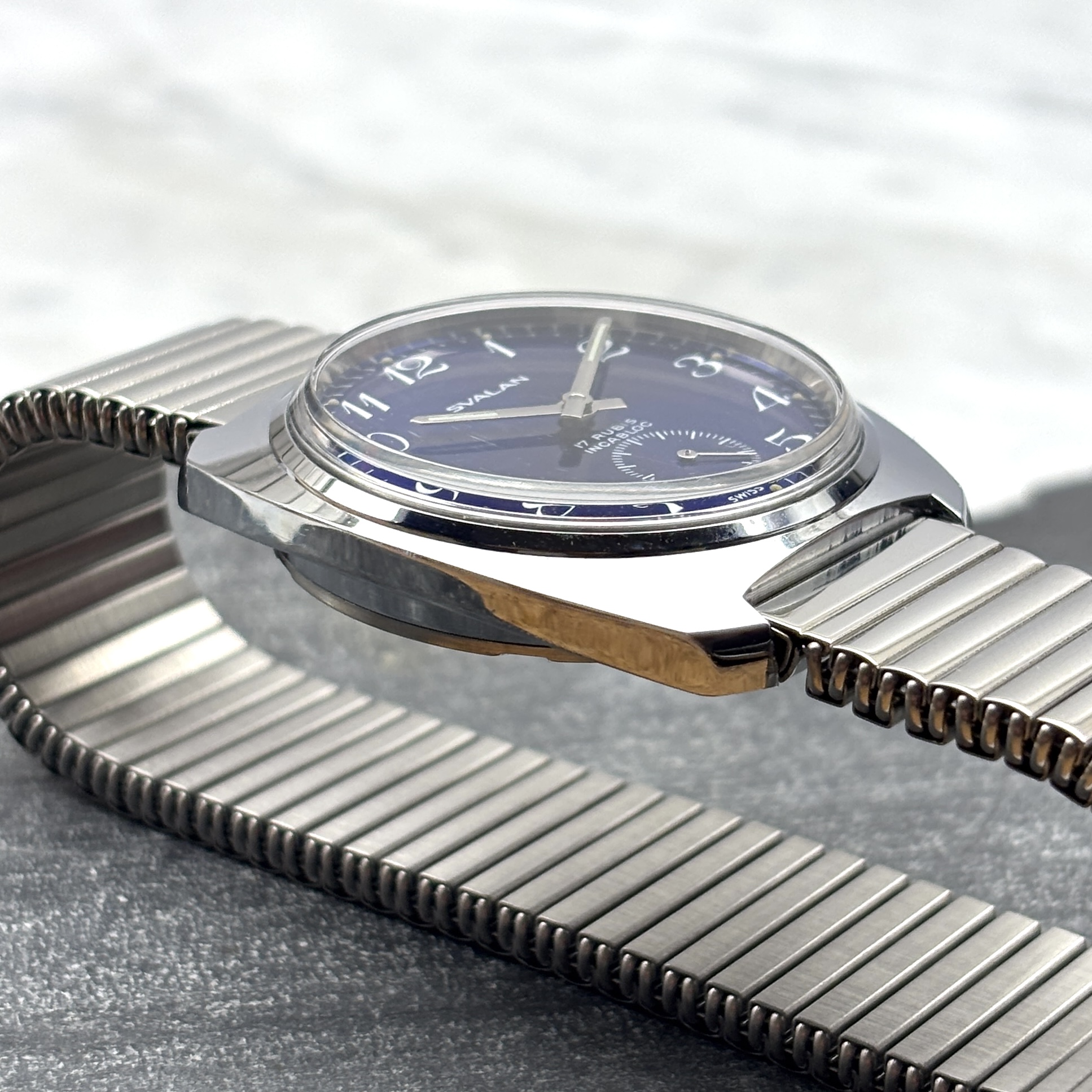 SVALAN, boett i vitmetall 35mm, manuell, cal Unitas 6325, plexiglas, liten sekundvisare, flexlänk.