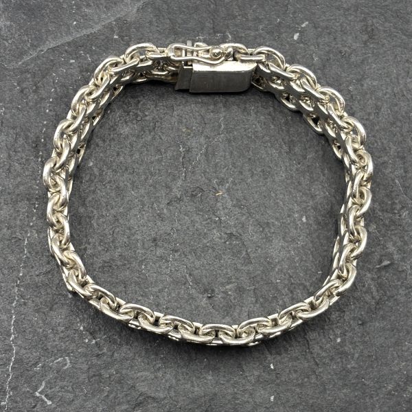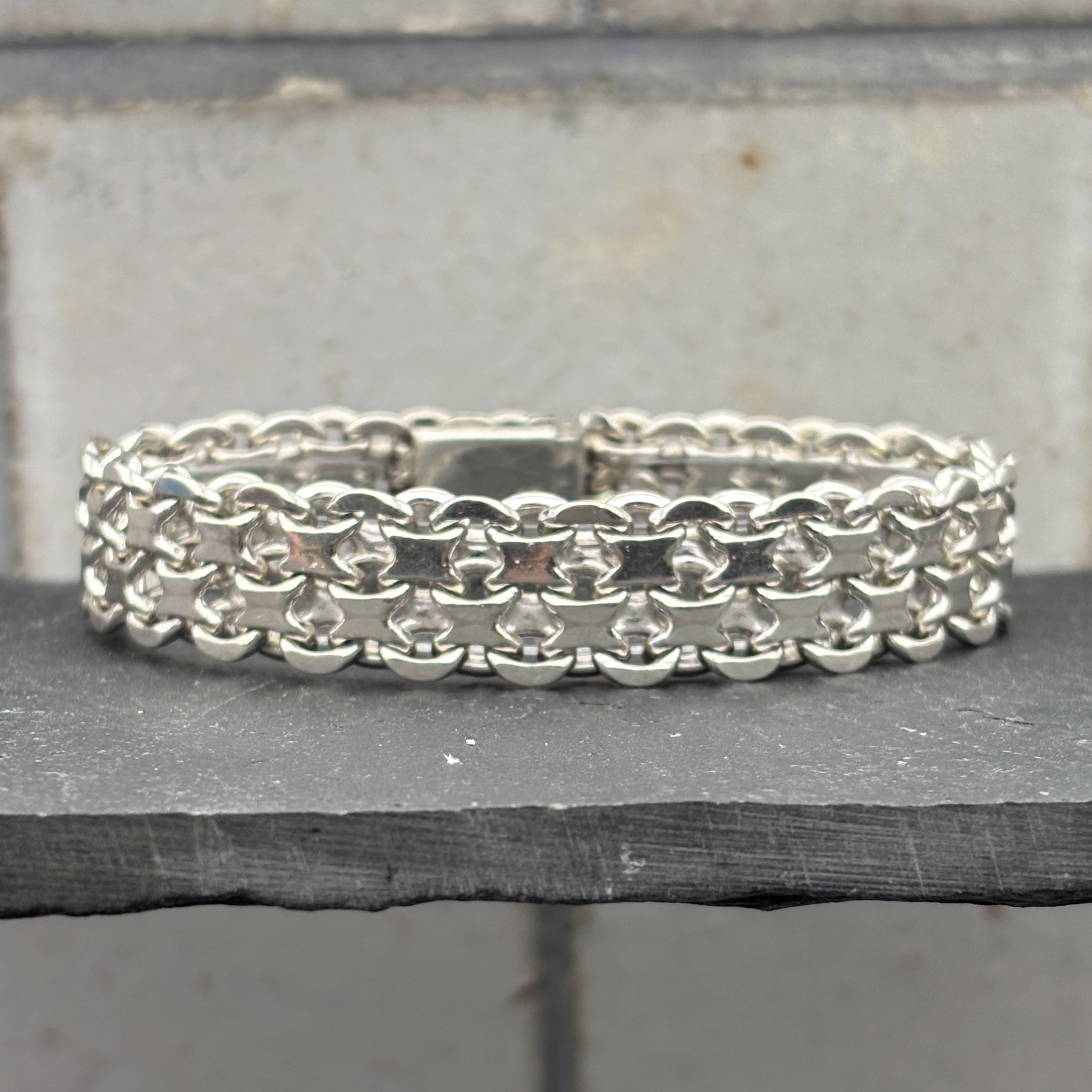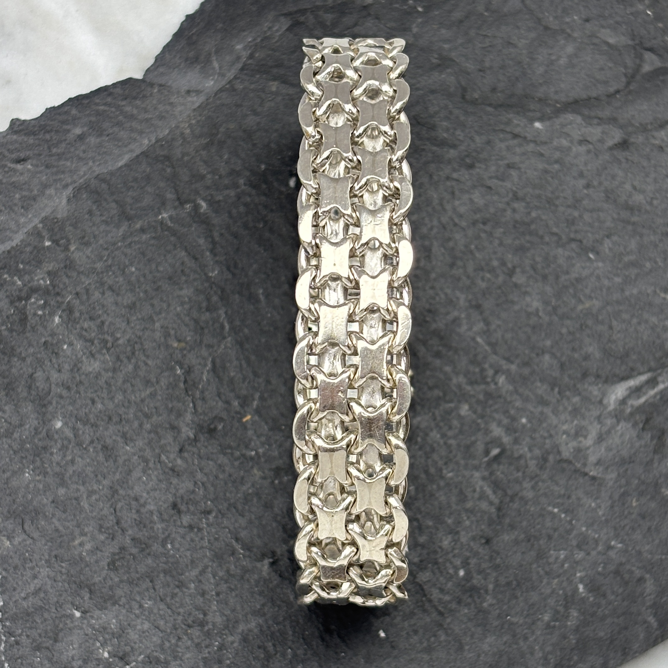 Vintage, ARMBAND, x-länk, silver, vikt 50g, L=19,5cm, bredd 14mm, kistlås med säkerhetsåtta.