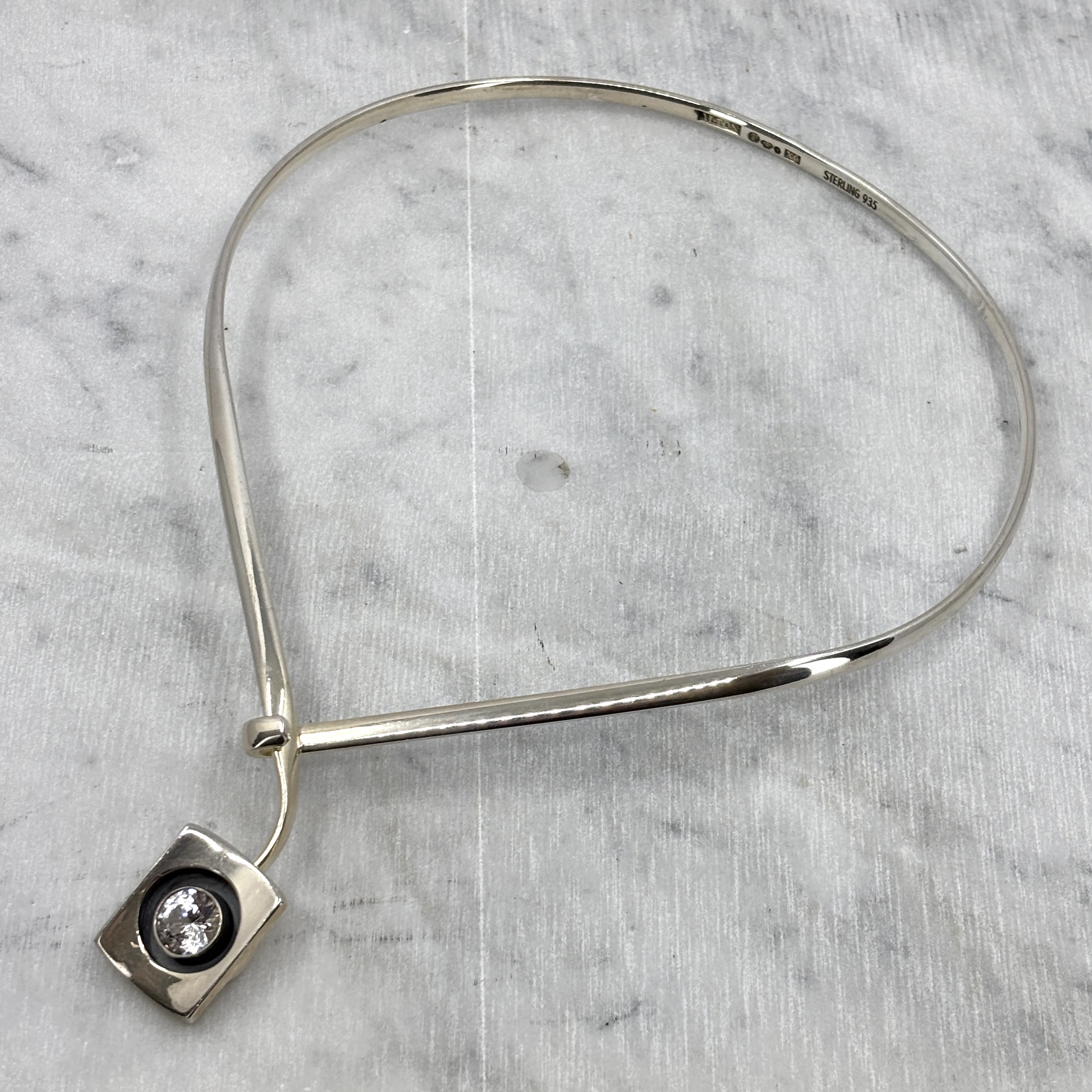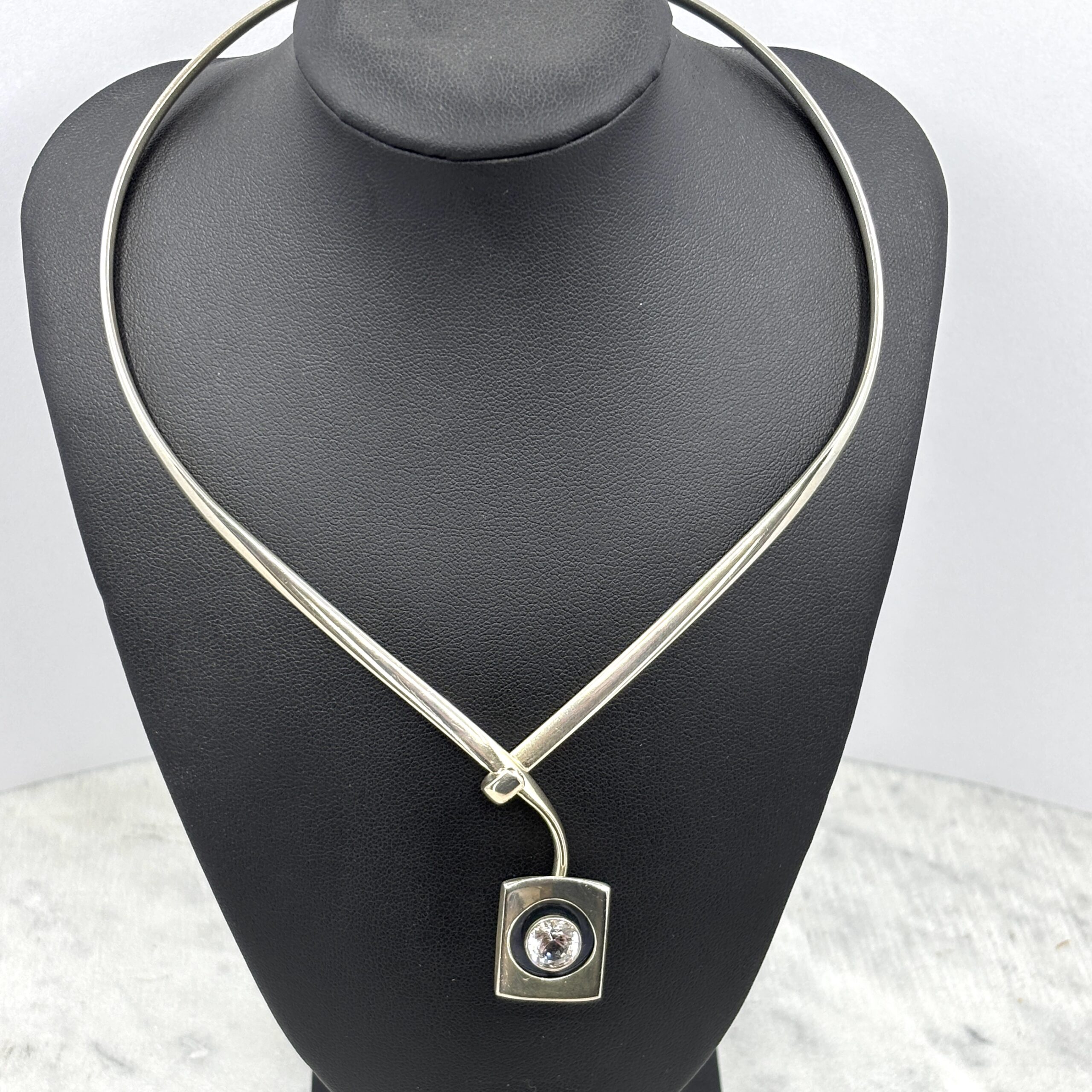 Vintage, HALSRING, sterling silver med bergkristall, vikt 39g, tillverkad i Sverige 1972.